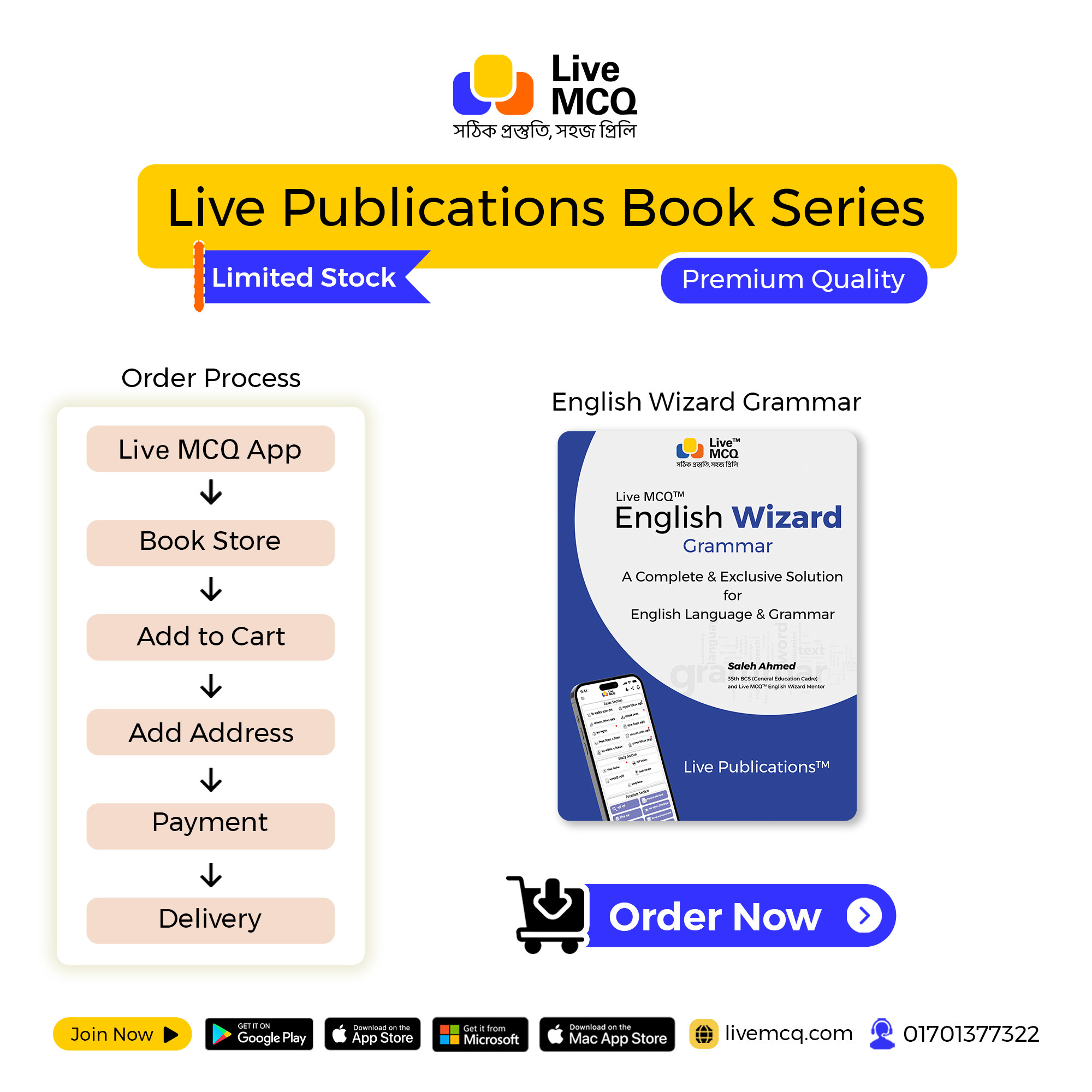 Live MCQ টিমের পক্ষ থেকে শুভেচ্ছা। আমরা Live Publications-এর প্রথম বই হিসাবে “Live MCQ English Wizard” বইটি প্রকাশ করেছি। আপনি Book Store থেকে সহজেই বই অর্ডার করতে পারবেন।